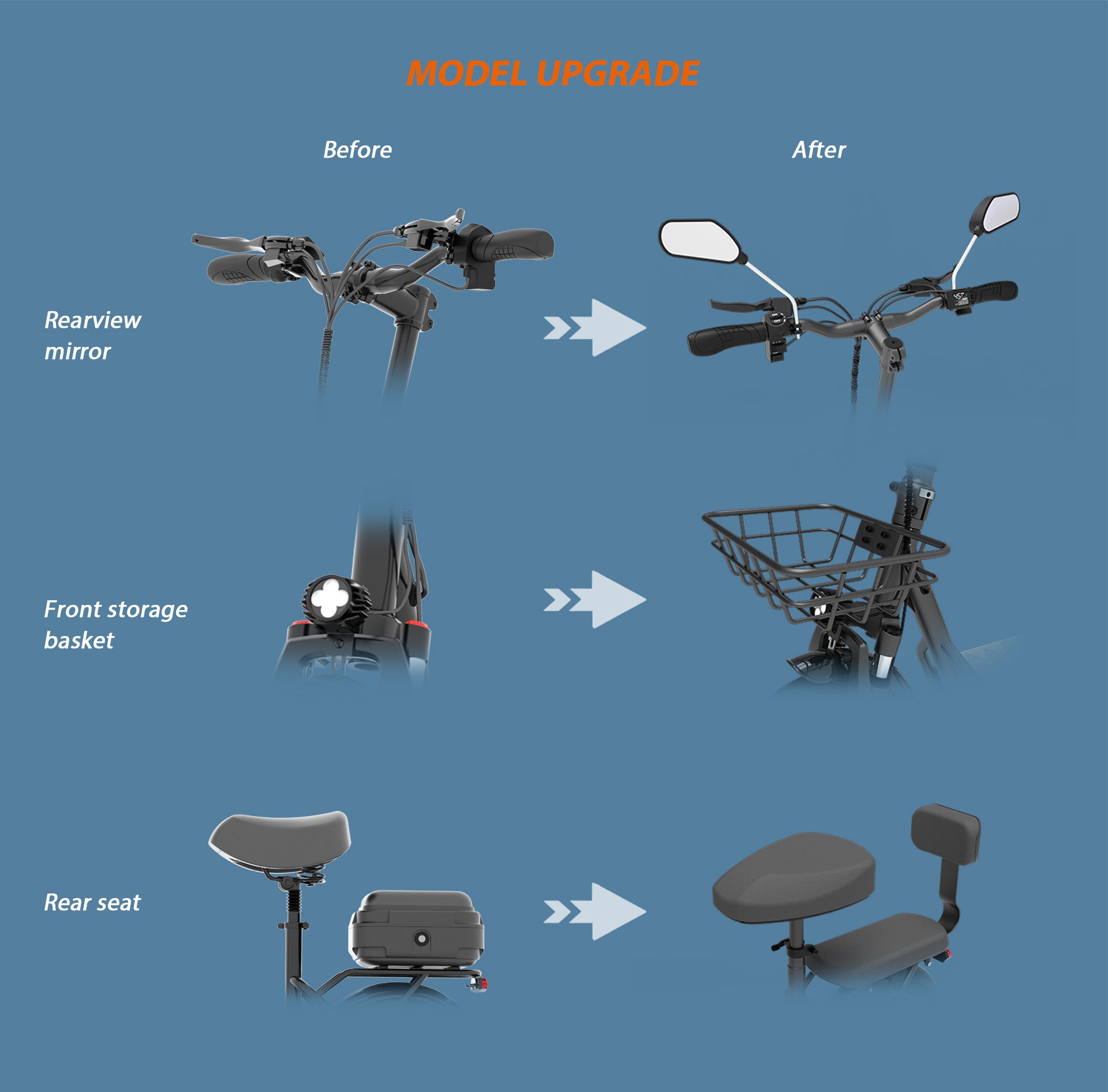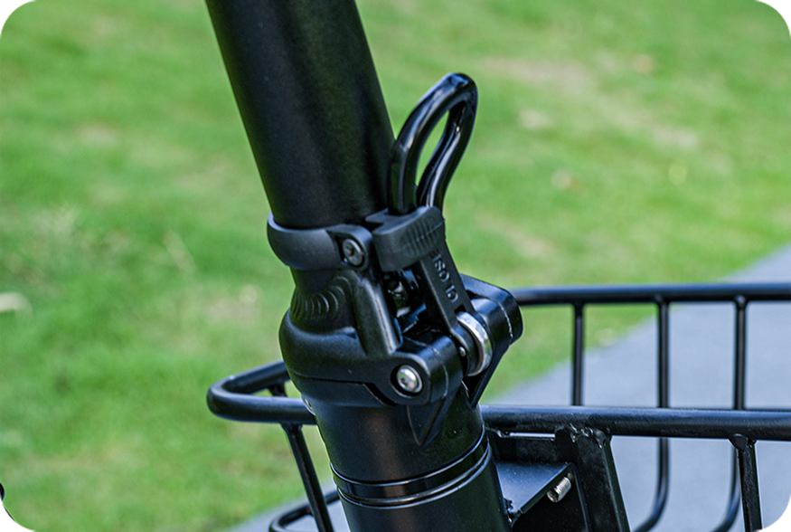 A - Pince de réglage hauteur B - Pince de pliage C - Pneu 14 pouces