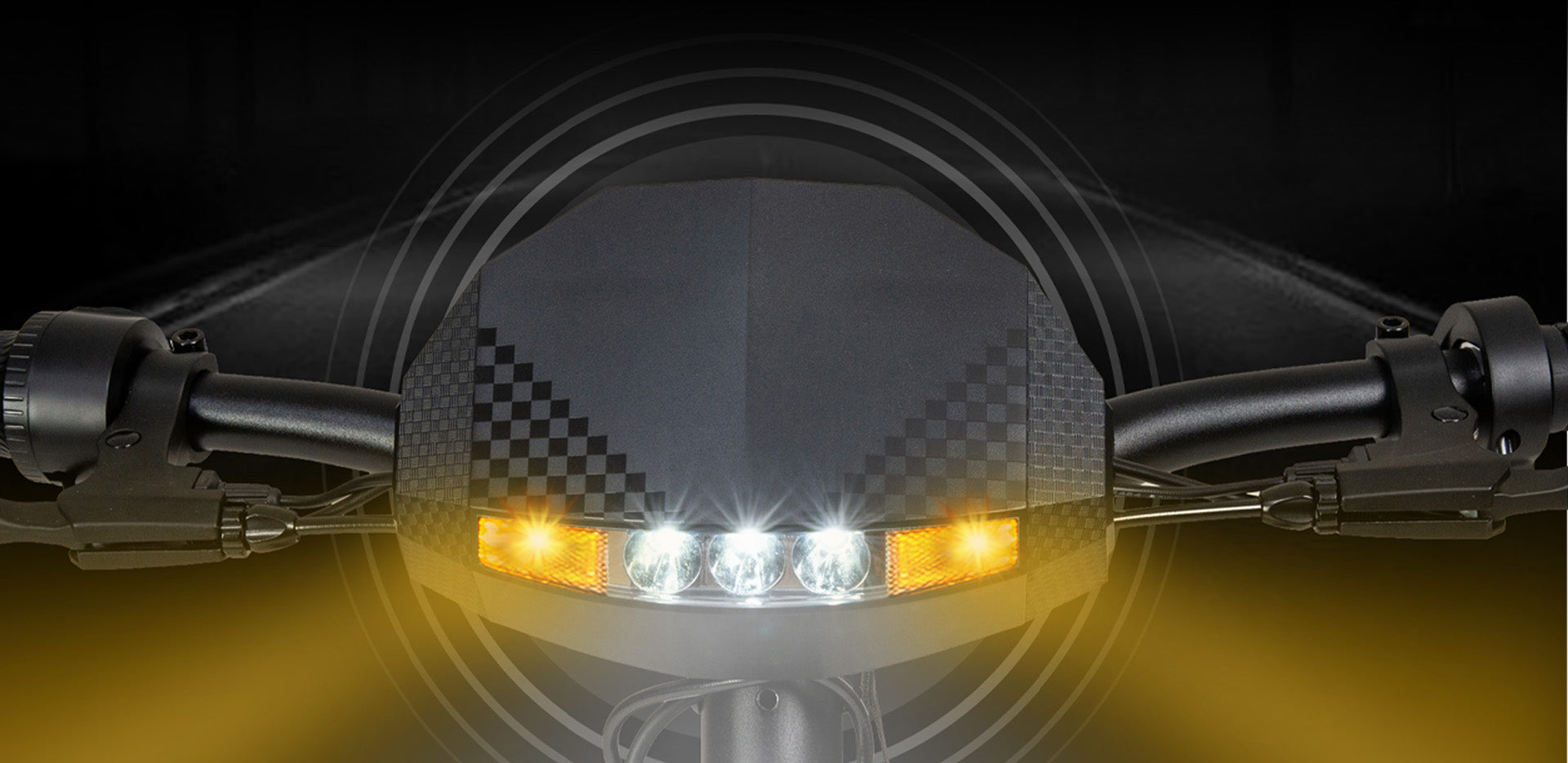 Éclairage LED puissant avec clignotants orange intégrés pour une visibilité maximale de nuit.