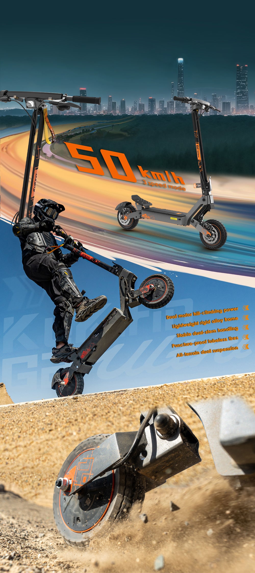 Trottinette électrique KuKirin G2 Ultra — double moteur 2x800W, vitesse 50 km/h, autonomie 55 km. Performances et confort.