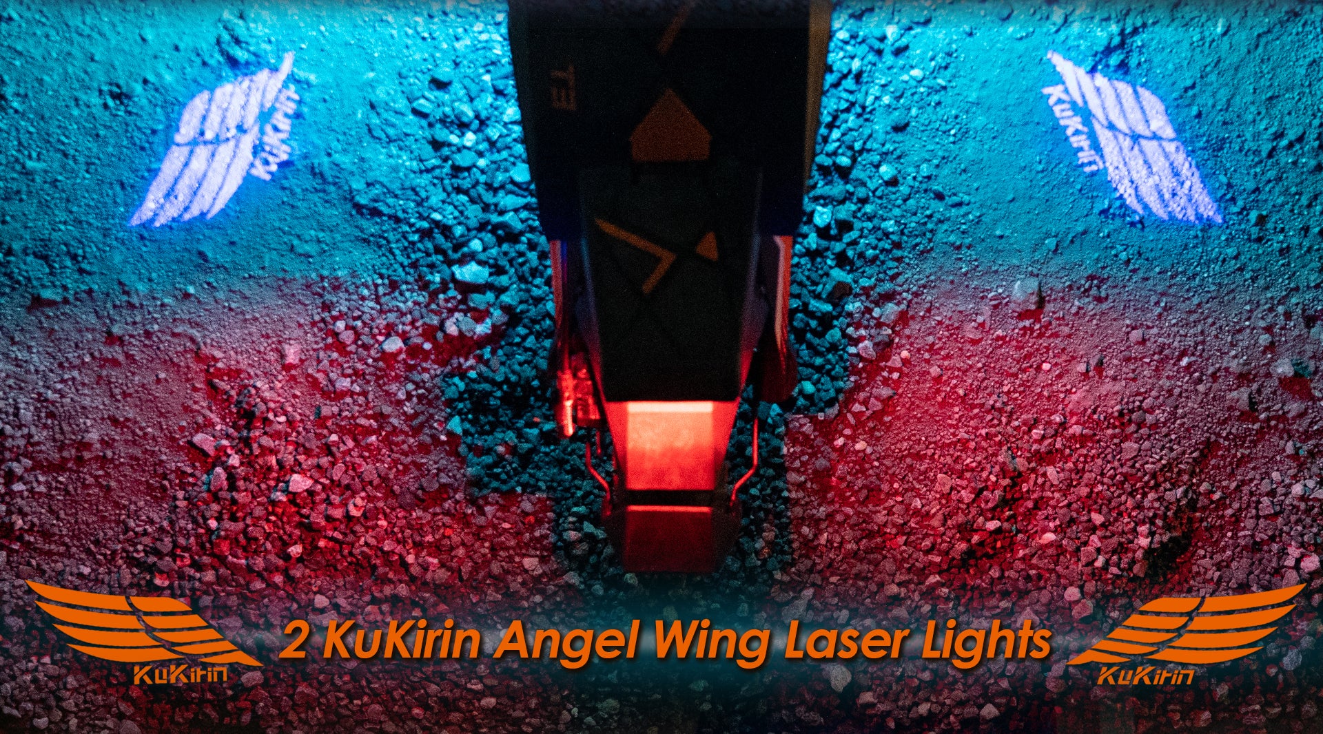2 projecteurs laser projettent des ailes lumineuses KuKirin au sol. Un spectacle visuel unique qui renforce votre visibilité de nuit.